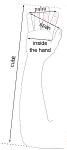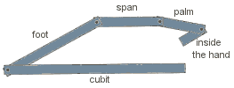 In the Middle Ages, cathedrals' builders used a measuring implement composed of five articulated stems. Each stem corresponded to a unit of measurement of the period: the inside of the hand, the palm, the span, the foot, and the cubit. The lenghths were given in lignes.