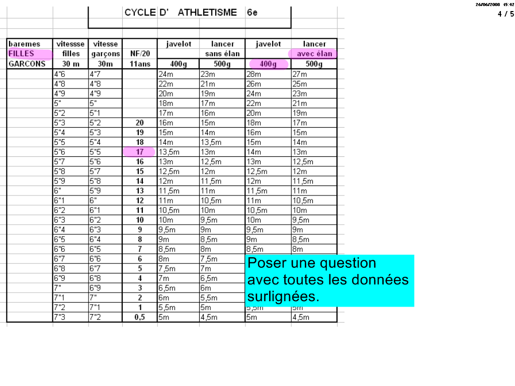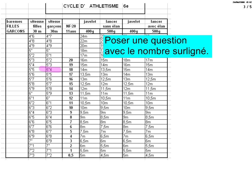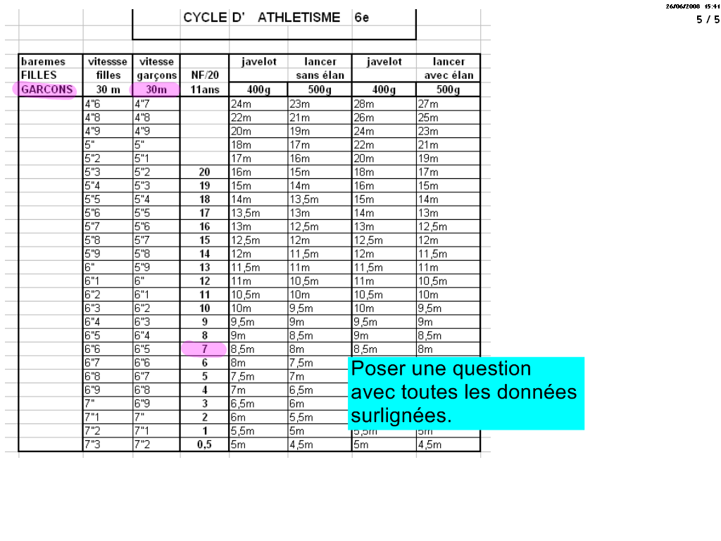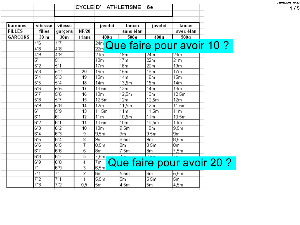 Le tableau des performances